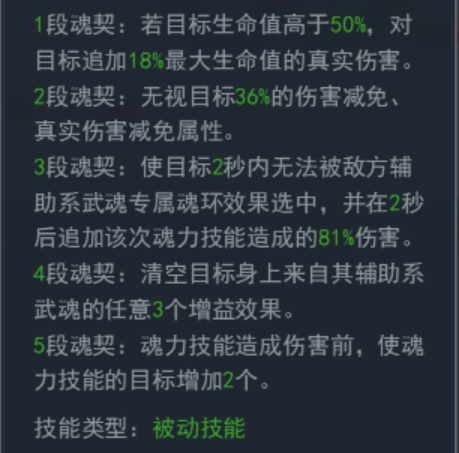 优先攻击防御武魂,对防御武魂的针对效果明显,包括:额外伤害、重伤禁疗、降低生存环星级、移除增益、降低生命上限、追加伤害等。