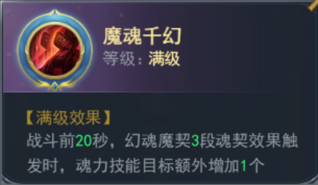 魂力值变成【魂契】,释放技能时不消耗魂力转为消耗魂契,消耗的魂契越多,技能的附加效果和伤害越多。