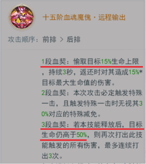 每次释放技能消耗魂契时,无视当前魂契段数,强制消耗3段以上,使魔傀的伤害始终保持中等偏上,提高伤害下限,伤害不会掉的太低。