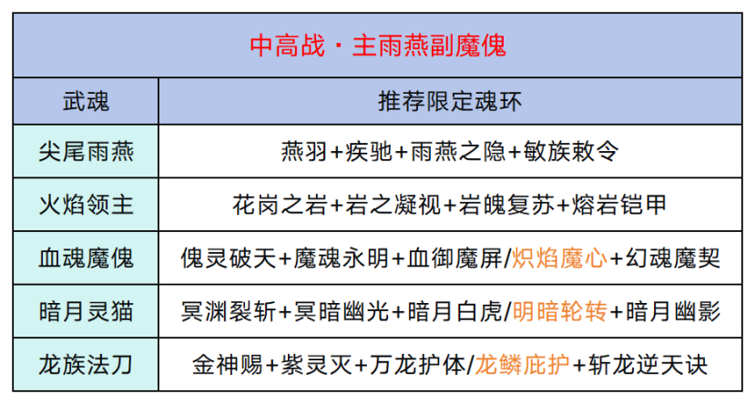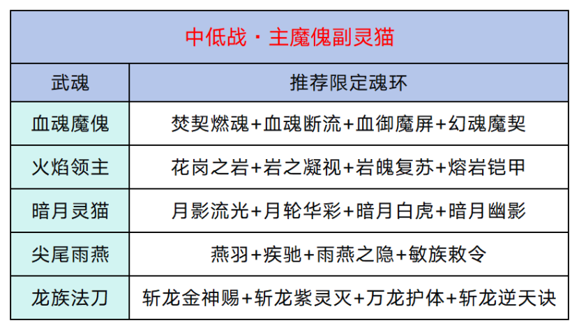 【炽焰魔心】和【明暗轮转】,会把魔傀和灵猫的爆发拉到最高,但这两个武魂的坦度都不高,容错率会很低,要谨慎使用。